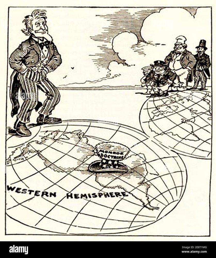 Altro momento importantissimo fu il 1823 con la famosa Dottrina Monroe, esplicitata nella celebre frase dell’allora Presidente James Monroe che disse: ”l’America agli americani”. In pratica in politica estera gli americani dichiararono e quindi avvertirono che mai più gli europei e nello specifico i britannici, dovevano intromettersi con gli Stati Uniti e il loro “giardino di casa”, definendo brutalmente così il centro e il sud America.