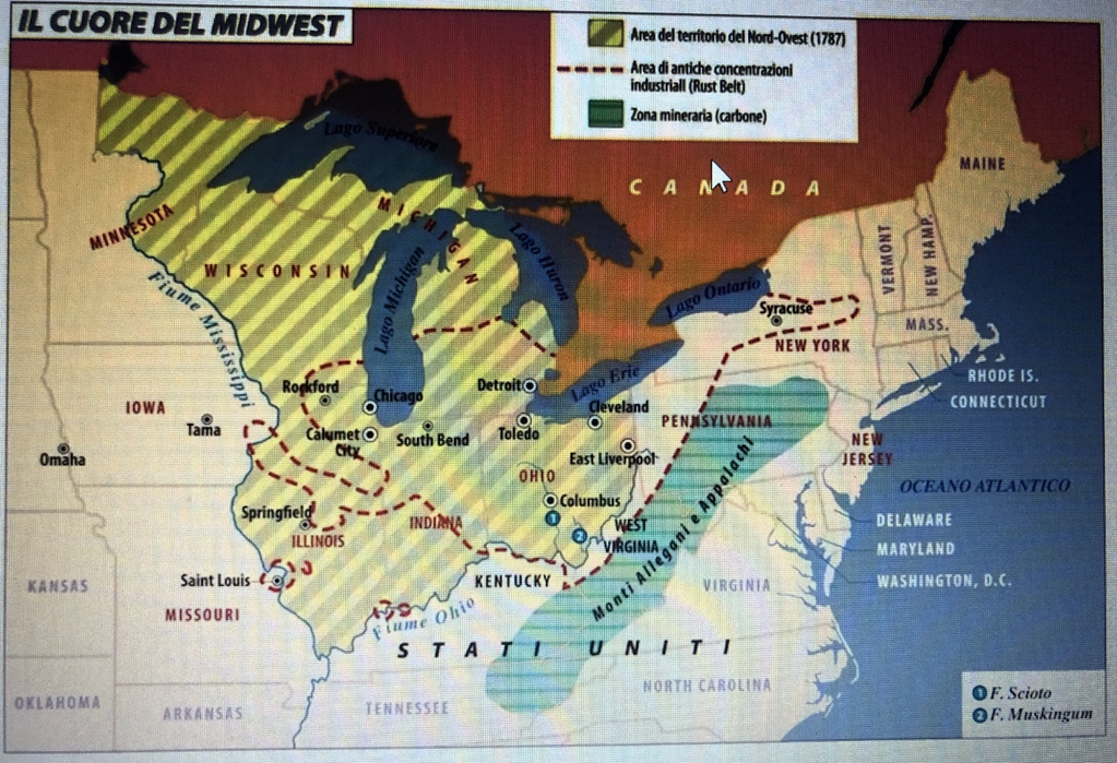 Ma da un punto di vista puramente strategico, da sempre gli USA hanno visto nel Midwest il cuore del loro modo di essere: qui sono arrivati gli europei soprattutto tedeschi, qui hanno creato le industrie manifatturiere, e qui si concentra ancora oggi il bacino elettorale che determina il vincitore alle presidenziali. Non è un caso che Bruce Springsteen cantando “Born in the USA” faceva riferimento proprio agli operai di questa zona così determinante.