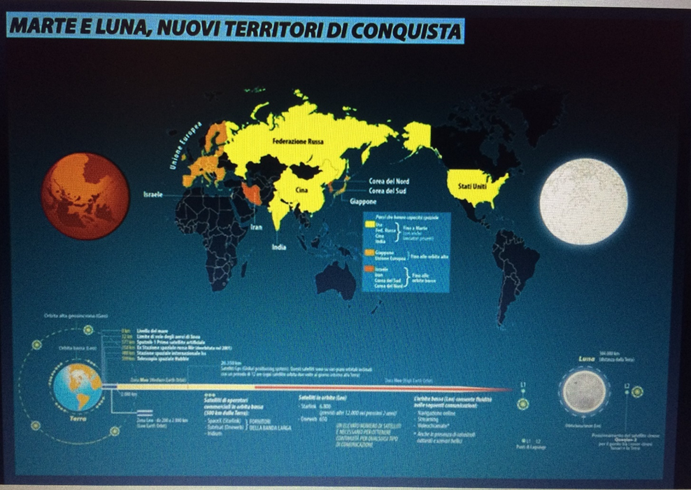 Ultimo ma non secondario terreno di conquista, oltre ovviamente al web creato dagli USA, è sicuramente lo Spazio. La strategia americana nel contenimento della Russia si è sviluppata sicuramente nelle orbite spaziali. Fu un russo il primo uomo nello Spazio: “da quassù la terra è bellissima, senza frontiere né confini” disse Yurij Gagarin dandoci la più grande lezione dell’umanità. Ma gli USA da quel momento non hanno mai smesso di vedere lo Spazio come un altro “terreno” di conquista, come mostrò dallo stesso Elon Musk nelle ultime elezioni presidenziali del 2024. Perfino oggi Luna e Marte restano dei territori di conquista non solo statunitensi.